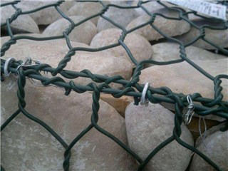石籠網(wǎng)是由高抗腐蝕、高強(qiáng)度、具有延展性的低碳鋼絲或包覆PVC的鋼絲使用機(jī)械編織而成,使用的金屬線(xiàn)徑是根據(jù)六角形的大小而不同,生產(chǎn)過(guò)程中是經(jīng)織網(wǎng)、剪切、鎖邊、綁扎后制成石籠和護(hù)墊,石籠網(wǎng)和護(hù)墊以折疊狀態(tài)供貨。