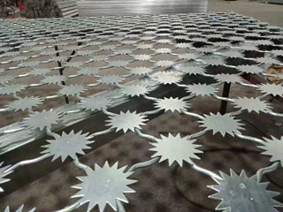 防攀爬金屬隔離網(wǎng)是監(jiān)獄、看守所非常重要的安全防護設(shè)施,由焊接鋼網(wǎng)加裝蛇腹形刀刺滾籠組合而成。防攀爬金屬隔離網(wǎng)一般分為刀刺金屬隔離網(wǎng)、梅花刺隔離網(wǎng)、密紋型防爬網(wǎng)等。防攀爬金屬隔離網(wǎng)具有結(jié)構(gòu)新穎、堅固緊密、網(wǎng)面平整、網(wǎng)孔均勻、刀鋒銳利、防攀爬、抗腐蝕性強等特點。防攀爬金屬隔離網(wǎng)建設(shè)于監(jiān)獄內(nèi)外墻地面和高墻上,頂部加裝蛇腹形刀刺滾籠,形成一道高不可攀、難以逾越的隔離障礙。配合高壓電網(wǎng)、各種監(jiān)控智慧磐石系統(tǒng),確保監(jiān)獄安全萬無一失。