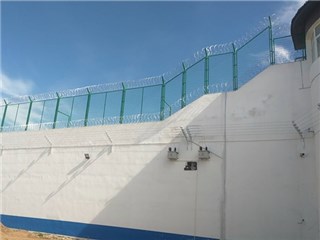 監(jiān)獄、看守所巡邏道隔離網(wǎng)上部安裝刀片刺網(wǎng)(刺絲滾籠),刀片刺網(wǎng)具有嚇阻、防翻越等效果,材質(zhì)堅硬,高強度,高張力,造型設(shè)計獨特,不宜觸摸,因