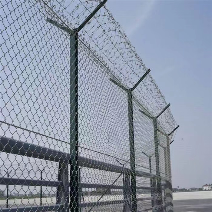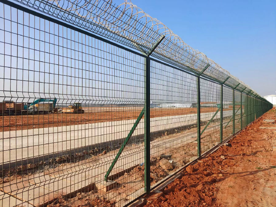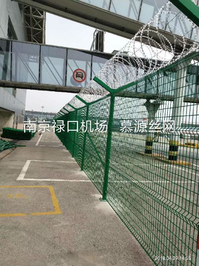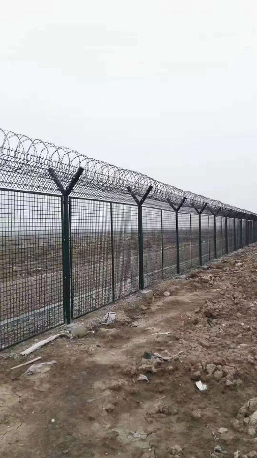 機(jī)場鋼筋網(wǎng)圍界是用于機(jī)場周邊防護(hù),防止人和動物私自進(jìn)入,它是由立柱、網(wǎng)片、刀刺滾籠等組成,表面處理一般為浸塑或噴塑,來延長使用壽命。